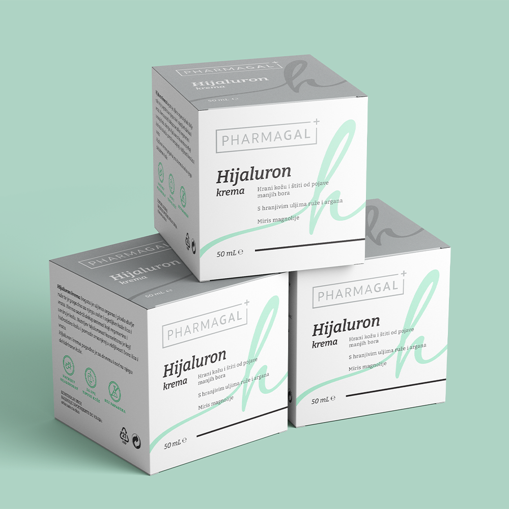 Hrani kožu i štiti od pojave manjih bora. S hranjivim uljima ruže i argana. Miris magnolije. Hijaluron krema bogata je uljima argana i ploda divlje ruže te je pogodna za njegu suhe i osjetljive kože lica i vrata. Krema sadrži dekspantenol koji regenerira i umiruje kožu. Natrijev hijaluronat humektans je koji hidratizira kožu i pomaže smanjenju vidljivosti bora lica i vrata. Hijaluron krema pogodna je za dnevnu i noćnu njegu dehidrirane kože.
